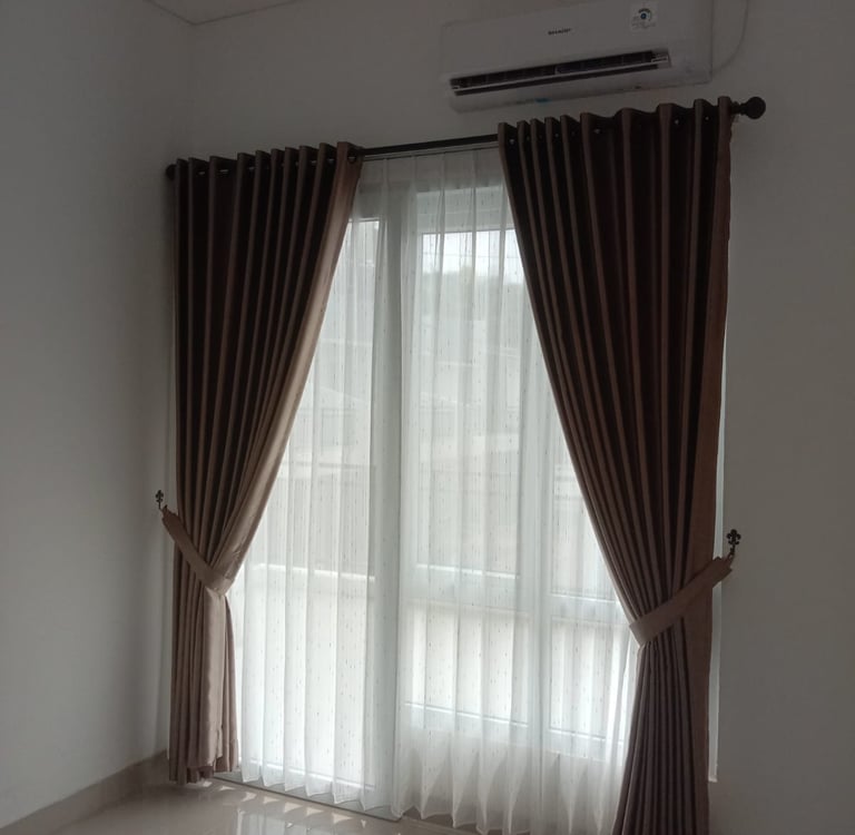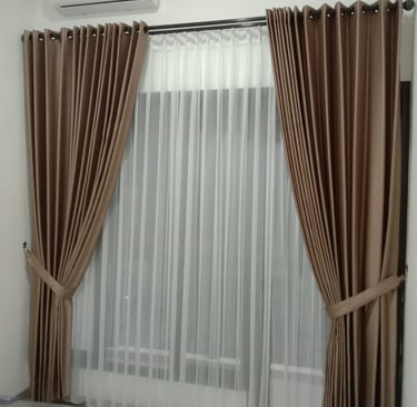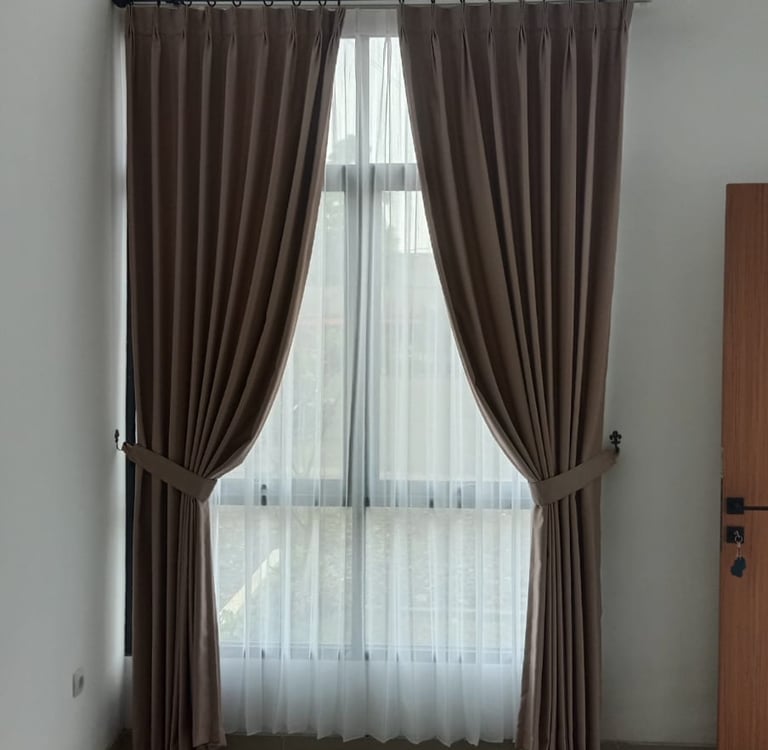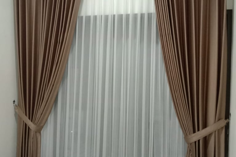 Gorden Blackout cocok untuk anda yang ingin ruangan lebih nyaman dan tenang. Bahan khususnya mampu menghalangi hampir seluruh cahaya matahari sehingga sangat ideal untuk kamar tidur, ruang TV, atau ruang kerja.